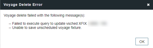 Unable to delete a scheduled voyage due to the above error message.