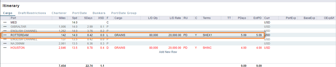 The below screenshot displayed the port itinerary in a Voyage Estimate.