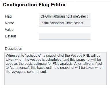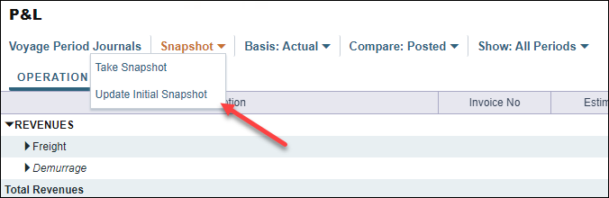 Commence. The system will take a snapshot of the Actual P&L values at the point of commencing the voyage and use it to populate the Estimate column of the P&L. Using this option will allow users to update the Estimate column of the P&L by using the Update Initial Snapshot function found in the Voyage P&L.