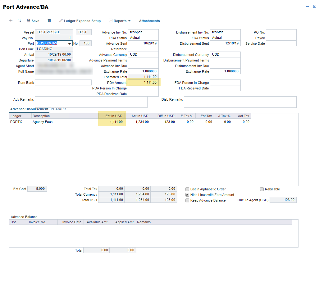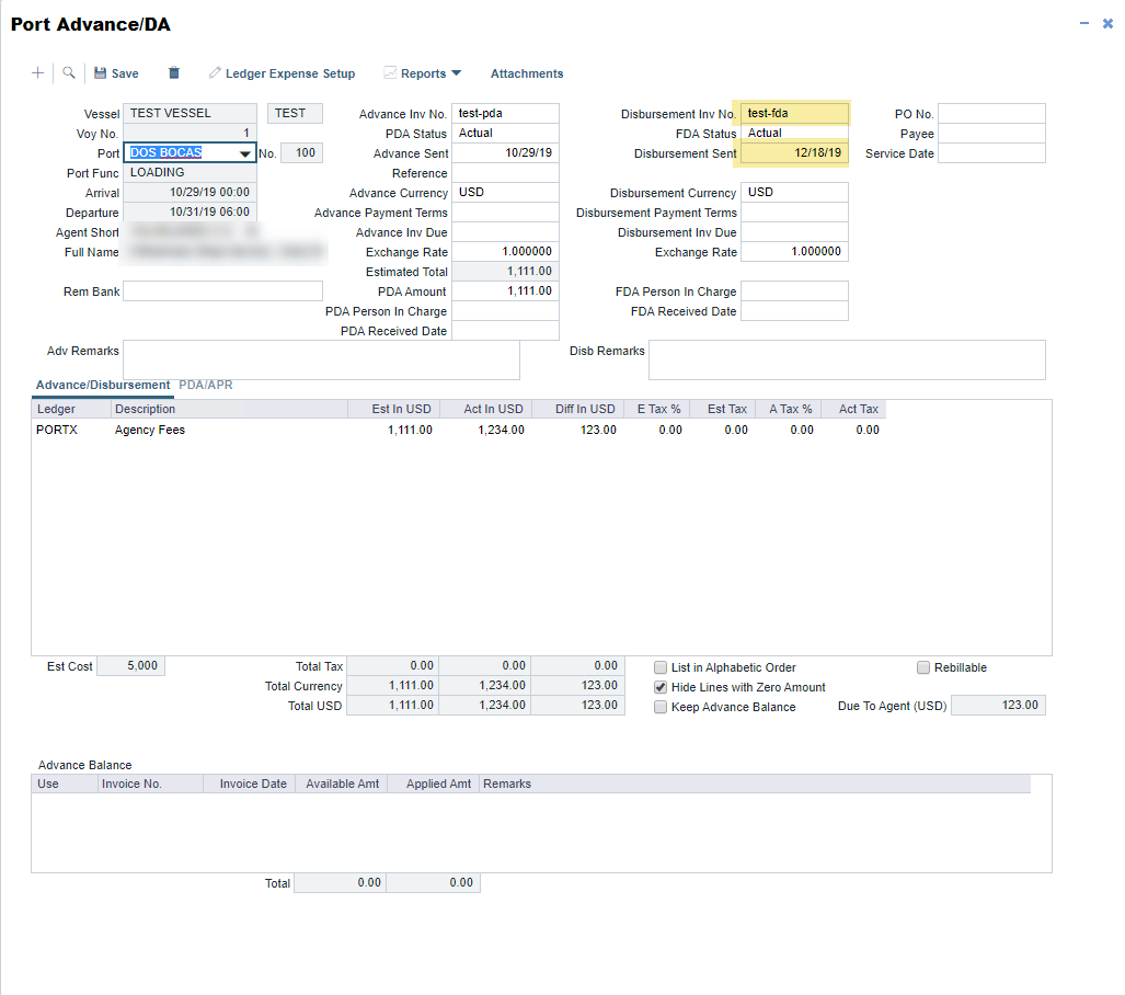 Clicking the Delete button on the Port Advance/DA form will delete the entire DA. However, you may want to just delete a Proforma DA (PDA) without deleting the related Final DA (FDA) vice versa.