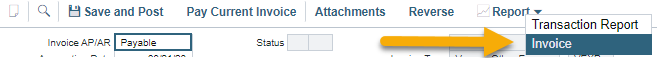 If you’re in Operations View, select Invoice. If you’re in Financials View, select the Report button, then the Invoice button.