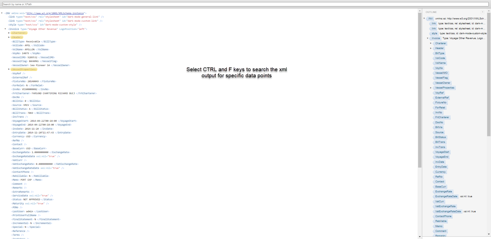5. A new tab will then appear in your browser’s window. Select the tab to view the XML and search the fields within (Select CTRL + A, then CTRL + C to copy the XML file entirely. You can then paste it to a new document by selecting CTRL + P).