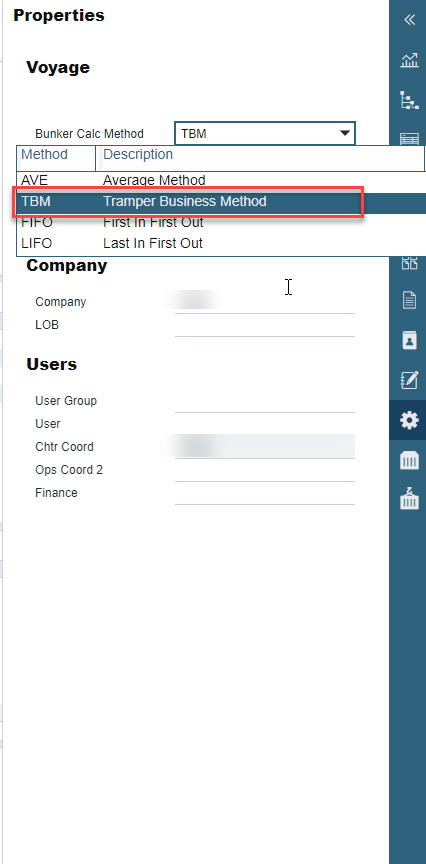 Change the bunker calculation method to TBM on Voyage properties. IMOS - Allocating Expenses to a Voyage