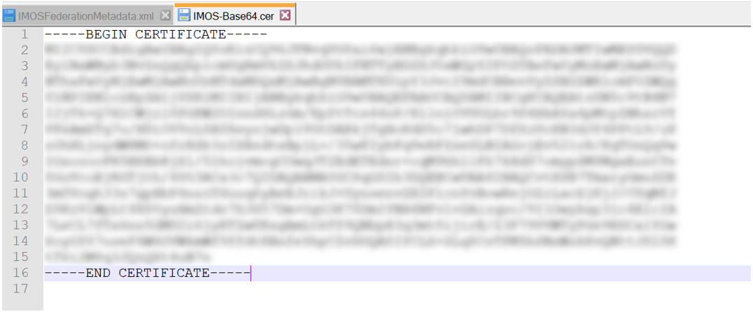 The client should provide you with a zip file (that includes IMOS-Raw.cer file, IMOS-Base64.cer ,IMOSFederationMetadata.xml file) or IMOS-Base64.cer file only.