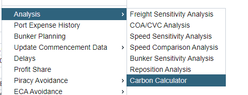 碳排放计算器也可以通过分析(Analysis)菜单或航程管理器访问。