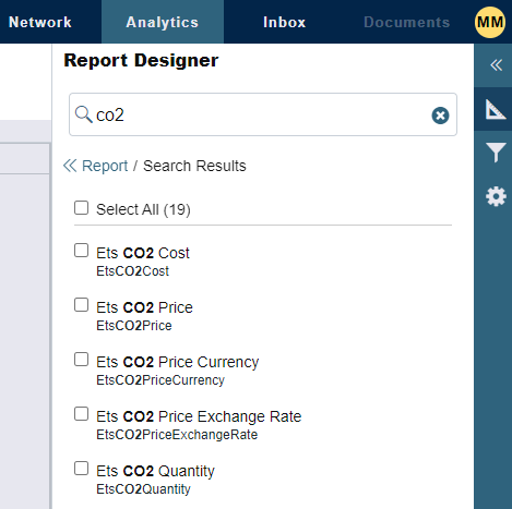 在Report Designer中,您可以将CO2字段纳入报告中。碳排放计算器中的ETS排放和成本可以通过碳排放表中的每批货物CO2字段归因于单批货物。