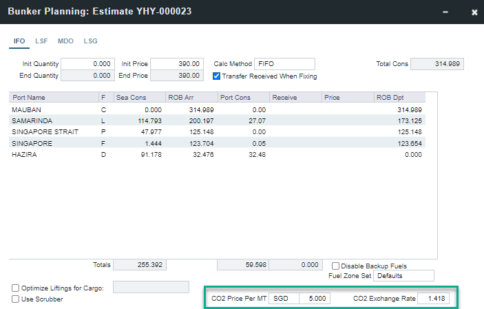 描述:启用后,CO2定价将包含在燃料规划(Bunker Planning)和估算器损益表(Estimator PnL)中。