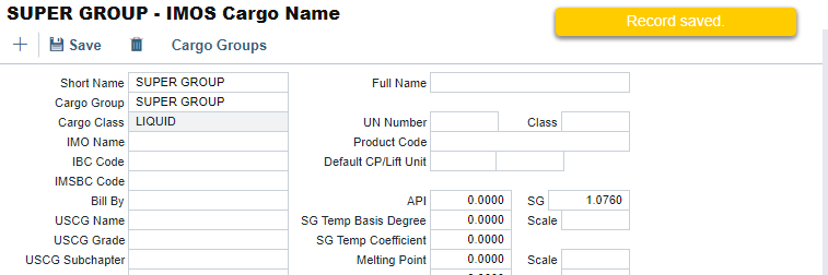 In the IMOS Cargo Name page, create a cargo with the Short Name to be same as Cargo Group. Click Save.