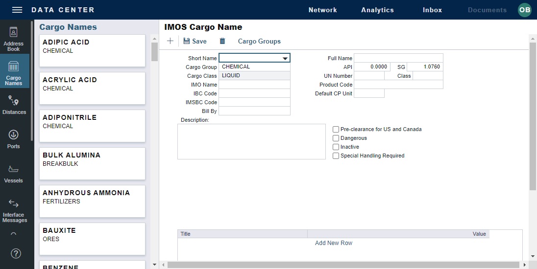 To view an existing Cargo Name, on the Cargo Names list, click its row.