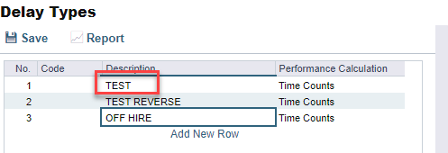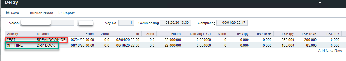Although you can add more delay types to the existing list, the descriptions OFF HIRE, OFF HIRE REVERSE, and PLANNED OFF HIRE are the only delay activity types that impact the P&L and TC contract.