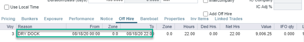If the discounted hire is not already part of the TC bill and needs to be settled on the hire invoice, we recommend creating a Delay Type for regular Offhire called Planned Offhire (or Planned Maintenance) so it can be included when the TC Bill is generated. Before invoicing, change the type to OFF HIRE to pull information into invoices.