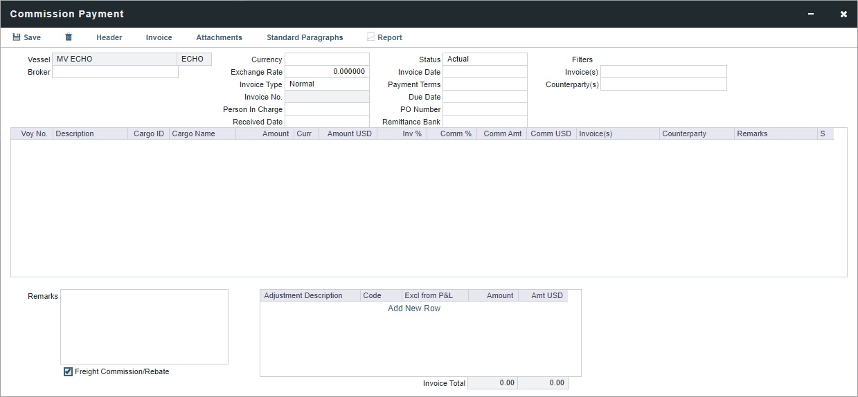 On the Operations menu, under Freight/Demurrage, click Commissions.