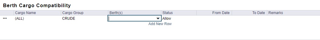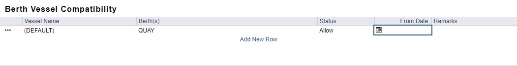 Add rows to define compatible vessels for each berth, including a valid From Date.