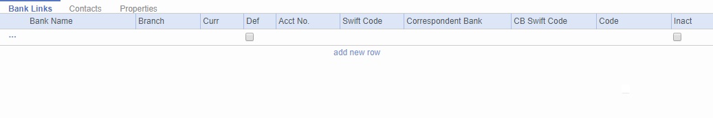 On the Bank Links tab of the Address form, click Add New Row and enter the new bank account information.