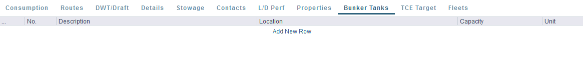 On the Vessel Bunker Tanks tab, you can record information about the bunker tanks.