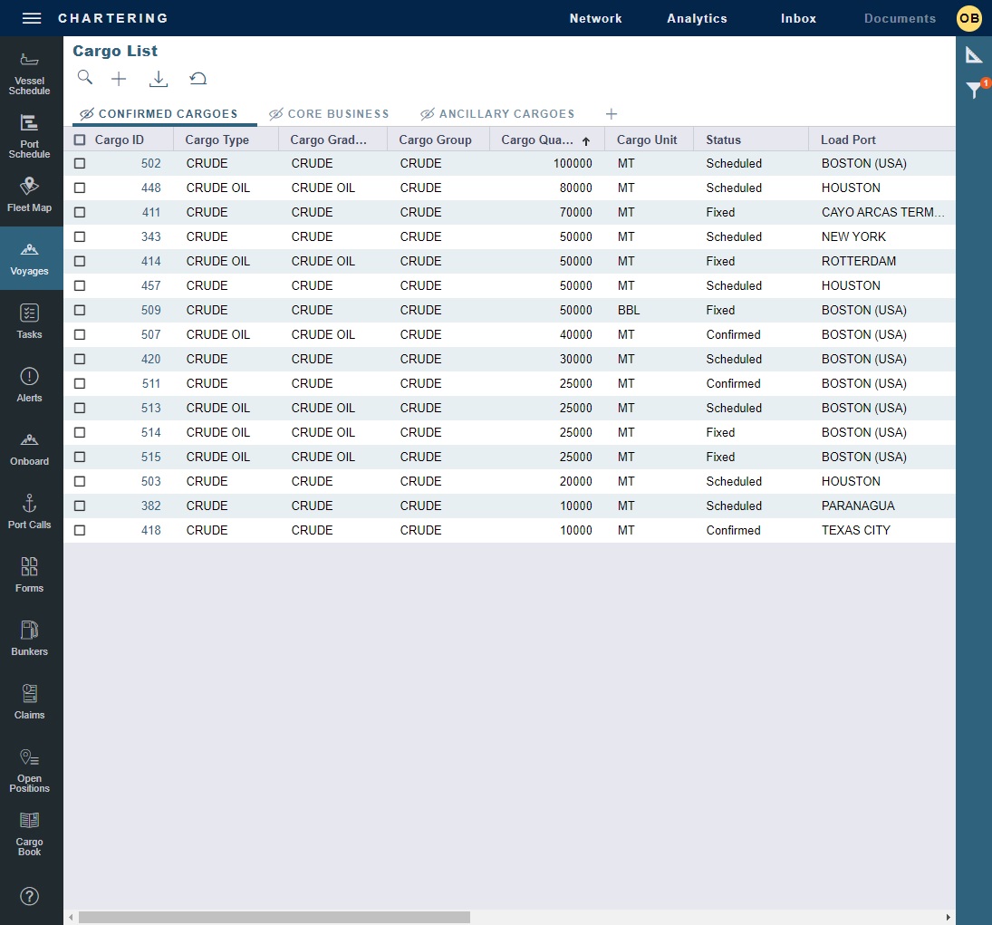 On the Chartering menu … → under Cargo → next to Cargo → click on List.