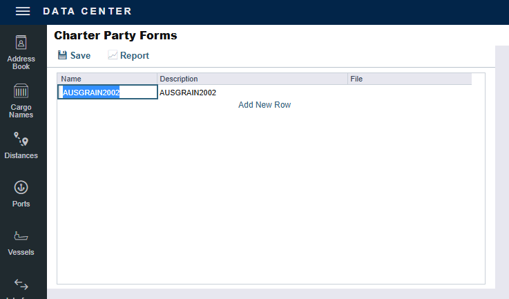 In the Data Center menu, select the … icon. Under Charter Party Terms, click Charter Party Forms.