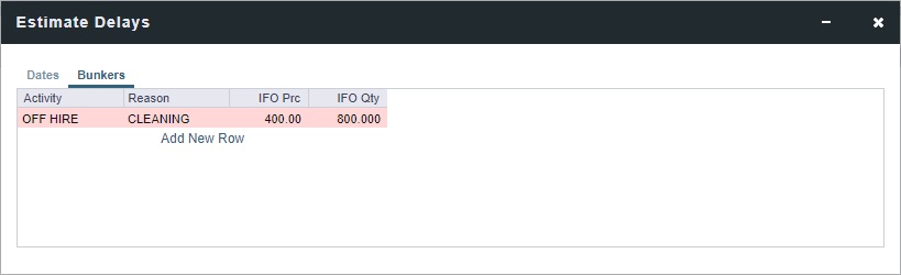 The Bunkers tab enables you to record bunkers consumed during delays.