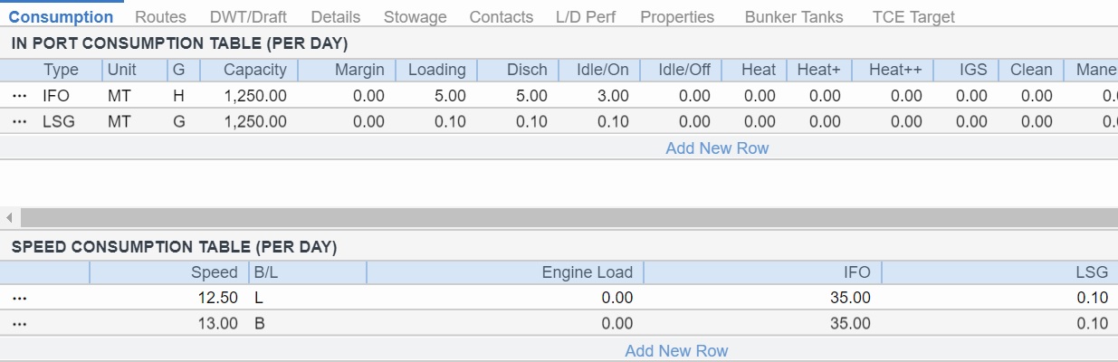 Fuel Zones settings should be IFO (cons rate only), LSG for all ECA Zones the voyage will travel through. This translates to "consume LSG at the defined rate of IFO + the defined rate of LSG." With the above example, LSG will consume 35 (IFO rate) + .1 (LSG rate) = 35.10 in ECA Zones.