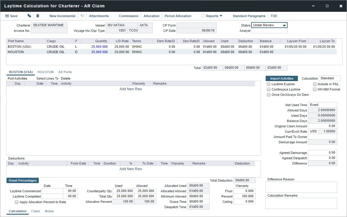 Final Statement Report: This report shows the final agreed Laytime Amount: the newest Incremental Claim excluding Previously Invoiced amounts.