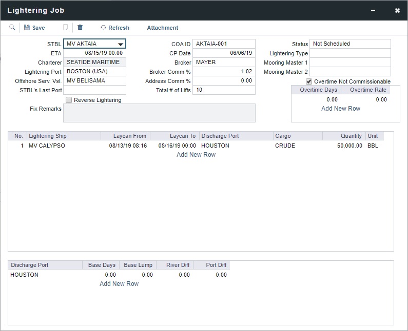 On the Master Lightering Contract, right-click a line in the Lightering Job grid and then click View Lightering Job.