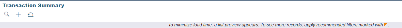 Note: If there are more than 10,000 records, to minimize the load time, a preview of the list appears. To see a complete list, on the Filters panel, filter by the fields marked with . Data displayed in subset previews are randomly selected.