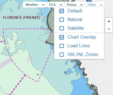 To highlight the load line zones on the map for draft calculations, hover over Other and then select Load Lines.