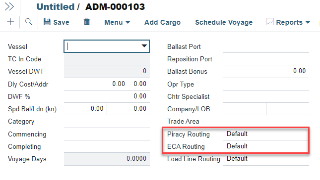 Default Piracy and ECA Avoidance routing preferences can also be applied in the Estimate and the Voyage Manager.