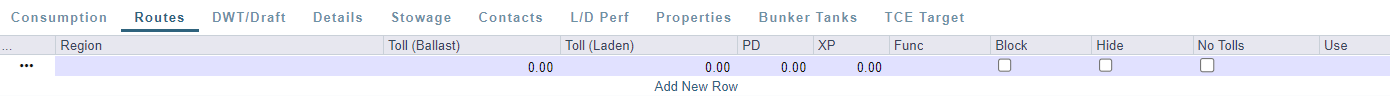 Toll (Ballast/Laden): These default into the Port Expenses of the Voyage Estimate or voyage.