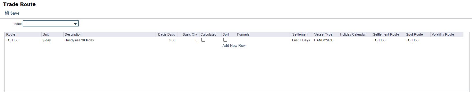 Trade Routes are typically defined by the market (by the data provider) or by your internal risk management team. Trade Routes are based on Vessel Type and have different units of measure ($/day, $/ton, $/mt, or Worldscale), usually based on the area or the start and end points of the itinerary.