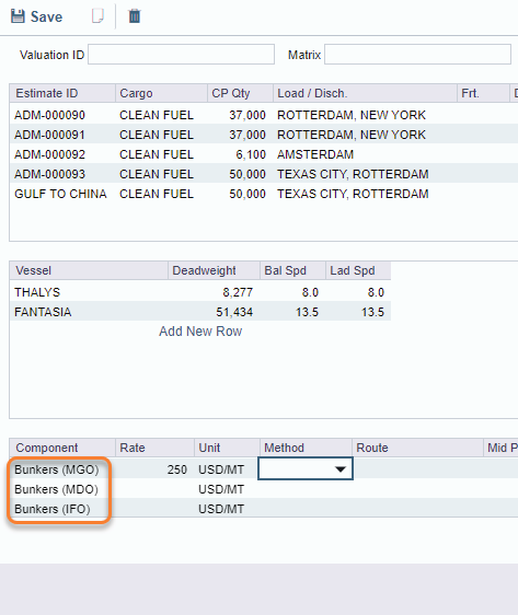 Bunker Expenses: shows the resulting Bunker Expenses for that estimate ID in that period given, the forward Bunker market prices