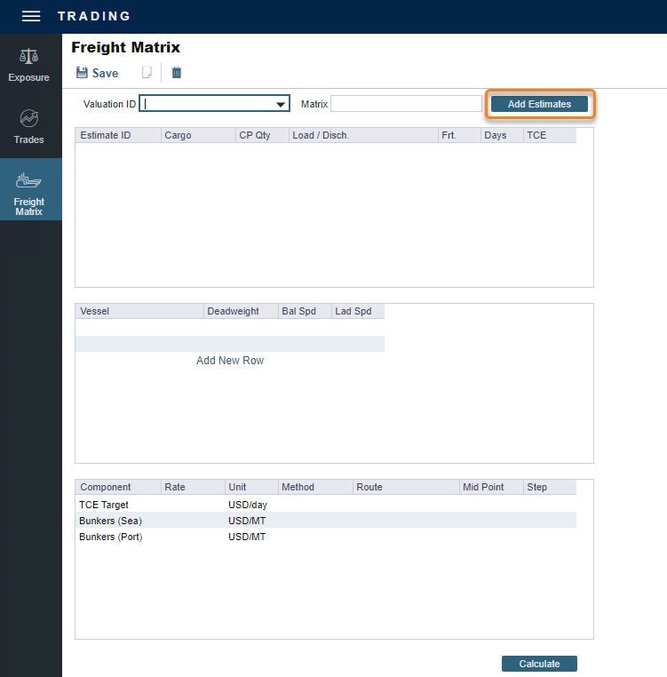 If Freight Matrix is enabled, at the bottom of Estimate columns, a Matrix field appears.