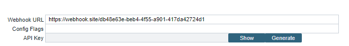 Set the Webhook URL to your webhook endpoint. If your webhook needs to validate the sender, enter or generate an API key (recommend 32-64 random ASCII characters).