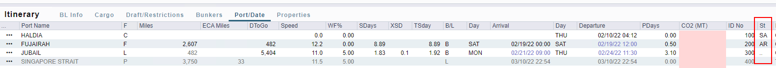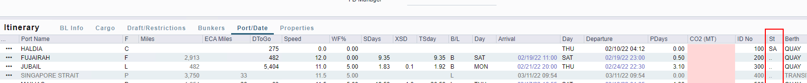 SA = Sailed (Departure Notice Submitted)