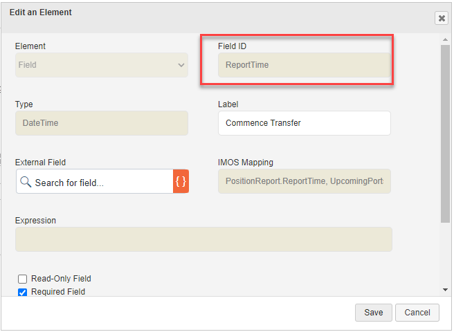If a form designer form has a field with the ID ReportTime, then that is what is used for the effective date. It means that the form is looking at the ReportTime field (label "Commence Transfer" in the example below) for the date rather than the activities themselves: