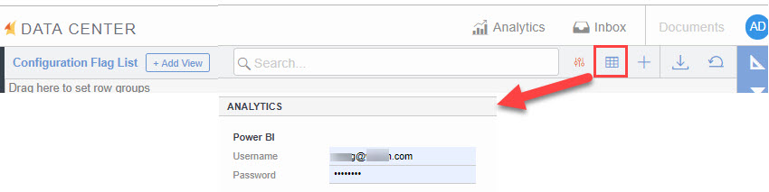 In the ANALYTICS section, enter your Power BI Username and new Password.