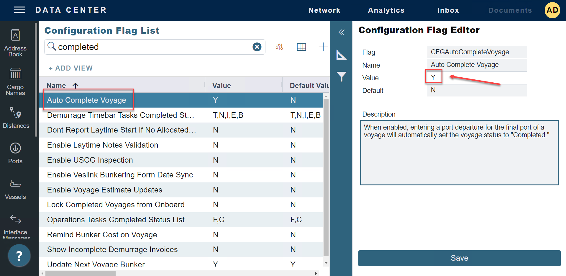 There may be an instance whereby you are trying to change a voyage status from Completed to Commenced and notice that the status keeps changing from Commenced to Completed automatically.