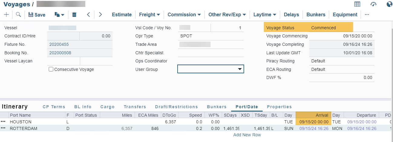 In order to add another port before the loading port in the vessel itinerary, any Port Activities and Activity Reports need to be deleted or the voyage status needs to be changed to "Scheduled“. Changing the voyage status will automatically delete all Port Activities and Activity Reports.