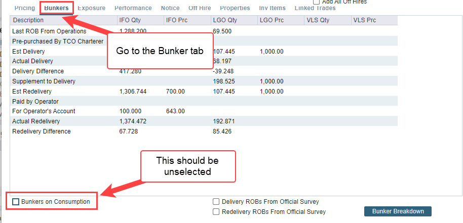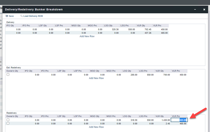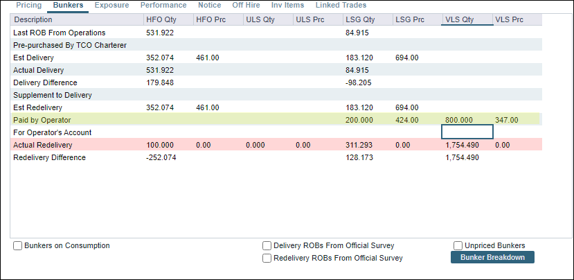 Select "Bunker Breakdown“. You should now be able to edit the Redelivery Bunkers. Change the values to what is required.
