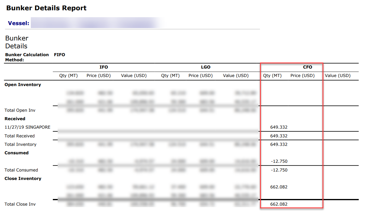Examine the bunker report. If the price of the missing bunker type expense is blank, this means that a price has not been entered for the initial bunkers or the bunker lifting. Once the missing price is entered, the issue should be resolved.