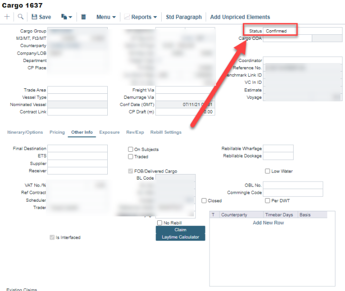 After saving, change the reference vessel back to the original, change the Status to "Confirmed“, then save again: