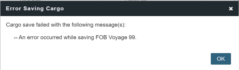 or the error "An error occurred while saving FOB Voyage #“ appears
