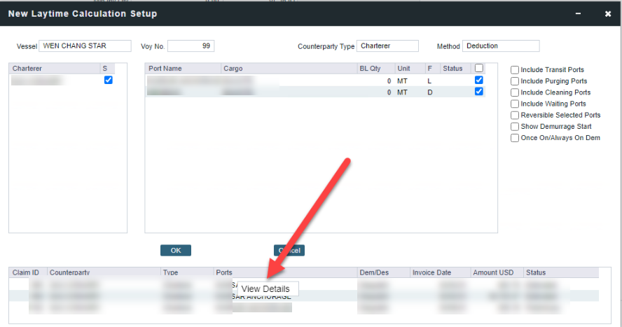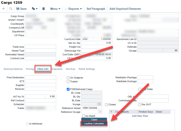 For the laytime calculation error, navigate to the Cargo ID > Other Info > Laytime Calculator: