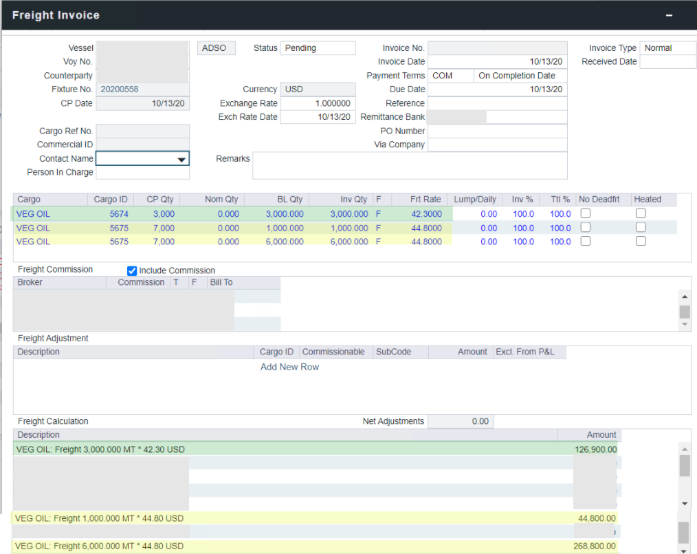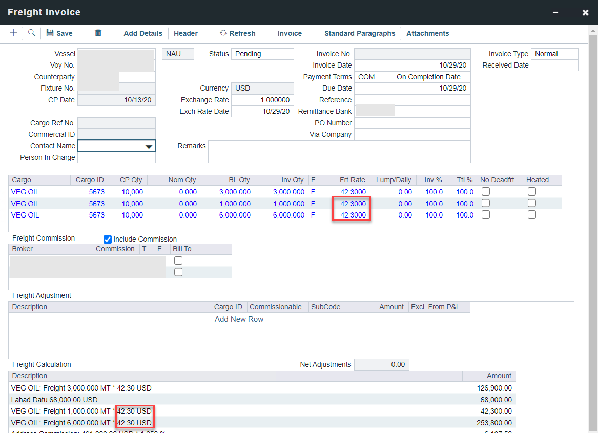 Under the Pricing tab in the Cargo Contract, different prices are entered per each cargo grade. Upon raising a freight invoice, one can see three BL quantities of each cargo grades, however they all display the same freight rate rather than various ones.
