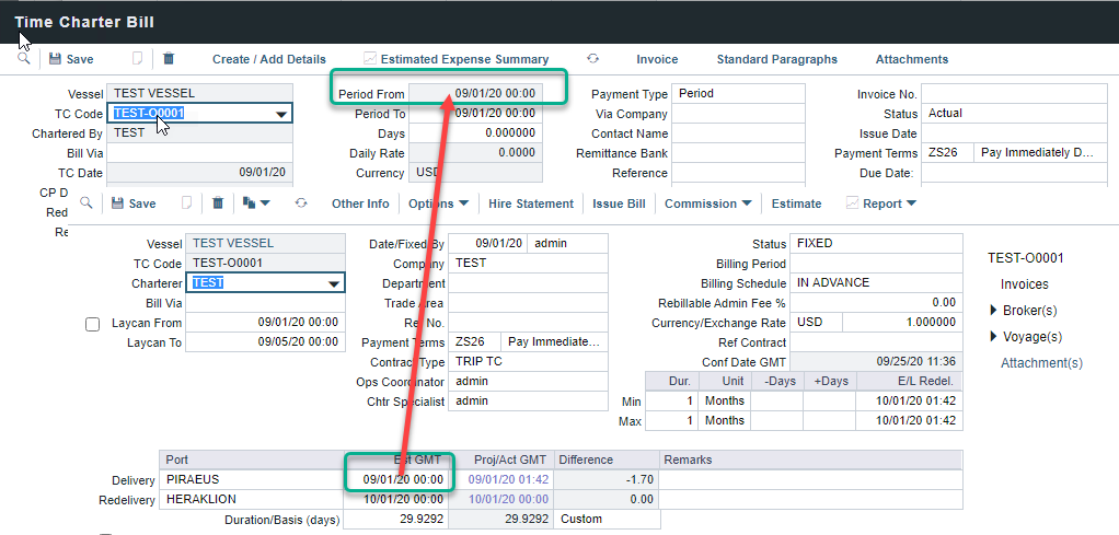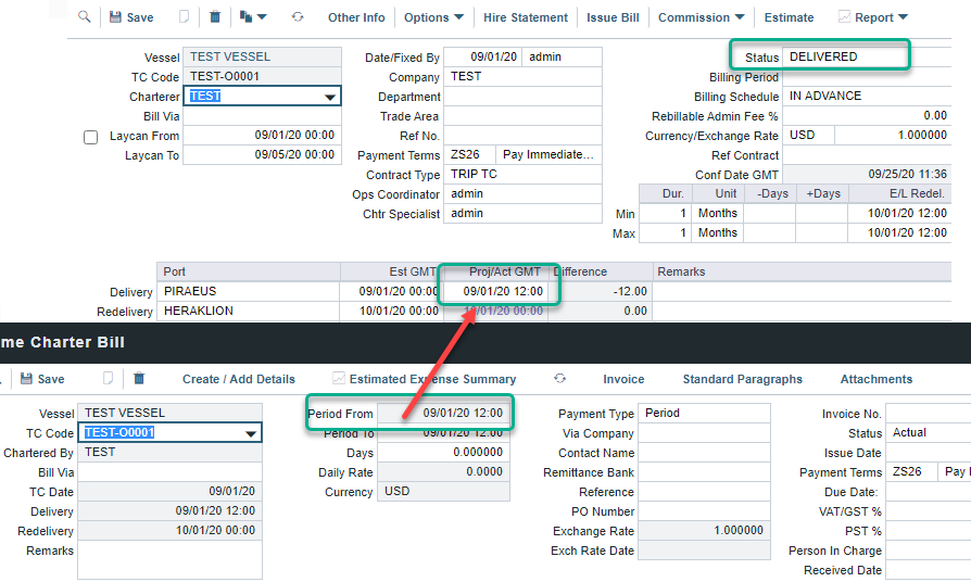 Scenario: In a TCOV or TCTO voyage, if the Operator needs to create the first hire or bill invoice before the vessel’s actual delivery date, they need to take the following into consideration.