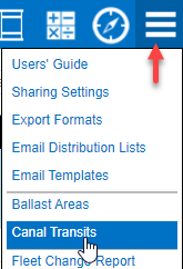 In the upper action menu, by clicking on the ‘Canal Transit’ button shown below: