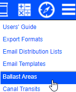 You can access the Ballast Areas from the actions menu in the upper-right corner of the page.