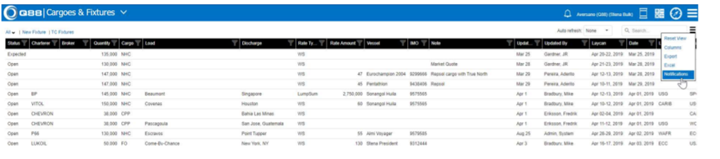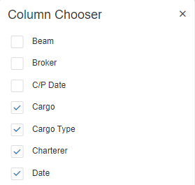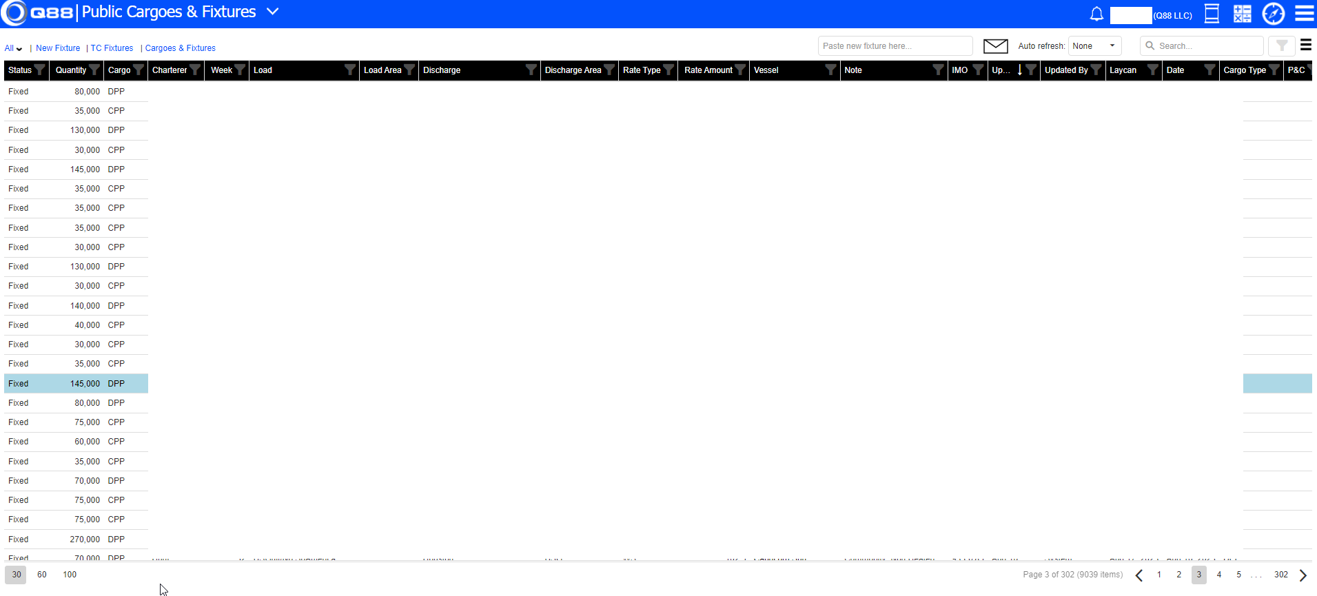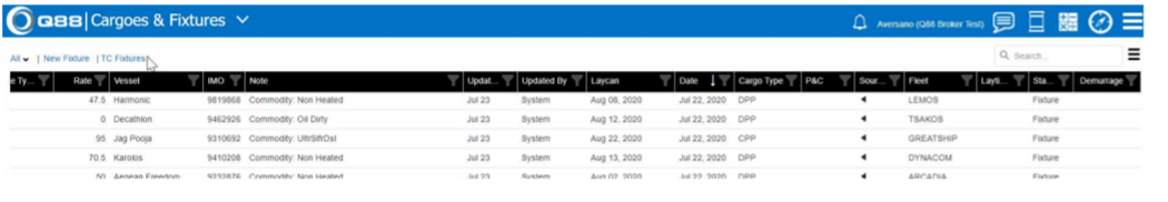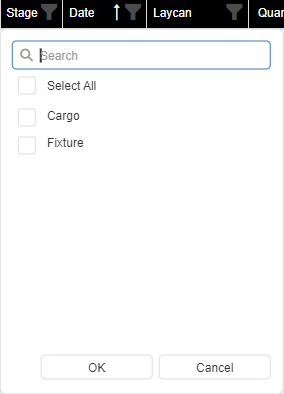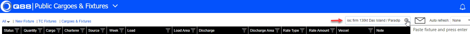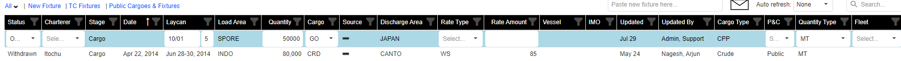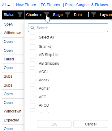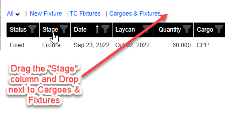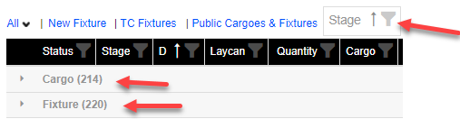 By dragging the Filter column next to the public cargoes and fixtures or Cargoes and Fixtures, you can sort by cargos and fixtures: