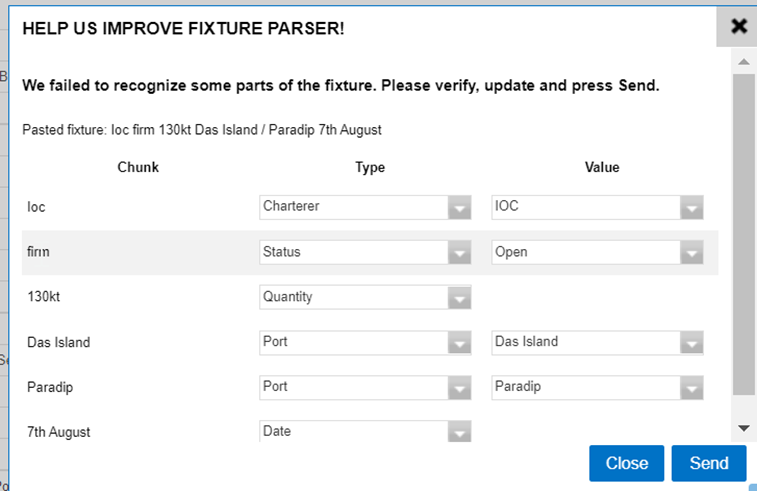 Once you paste the fixture you will be brought to the Cargo and Fixture pop-up with many (if not all) of the fields filled in.
