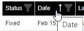 Example: Sorting by ‘Date’, the database will sort by entry date. The case that is showing is oldest to newest; by toggling the white up arrow to down, it will change the result from newest to oldest.